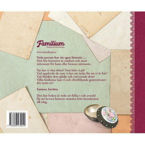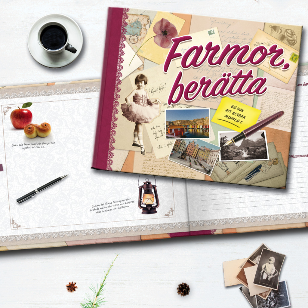 Boken Farmor, berätta är en unik gåva som framkallar leenden hos alla farmödrar. Boken är avsedd att fyllas i med minnen från hennes barndom fram till idag.