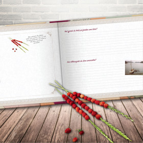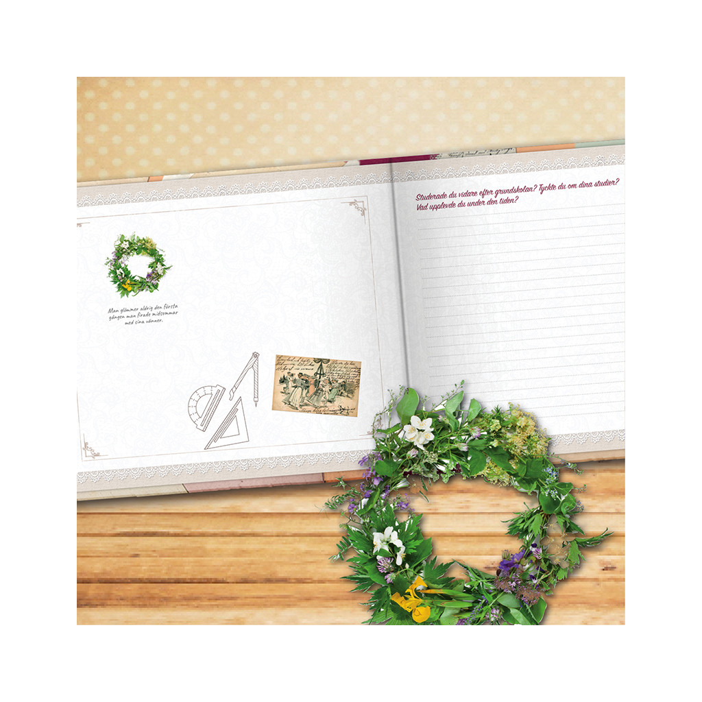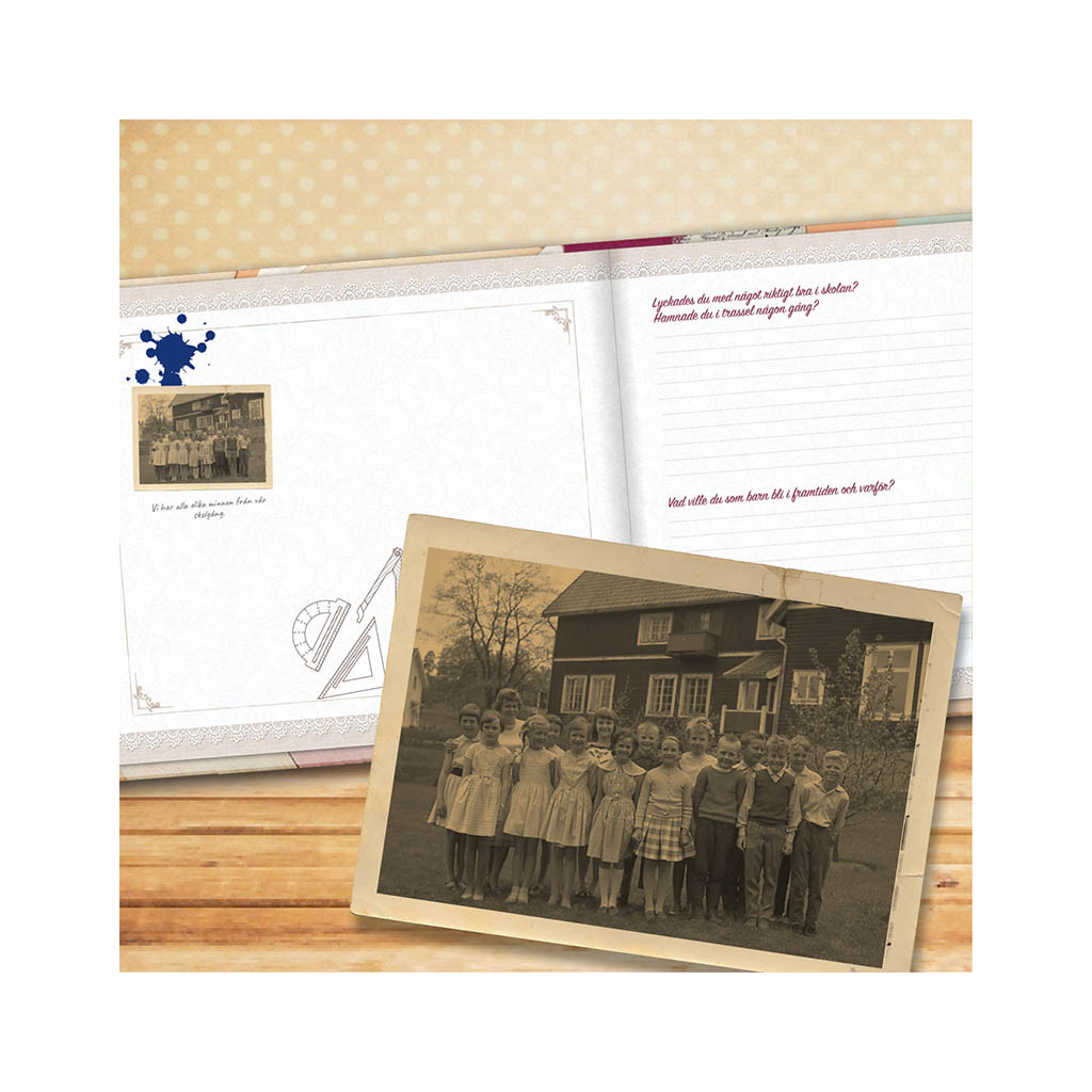 Formatet 25x30 cm, hårt omslag, papper med hög ytvikt och inbunden form garanterar lång hållbarhet, bra skrivyta och trevlig framtida läsning. I boken finns inspirerande bilder och tidsenliga fotografier vilka hjälper till att väcka minnen. I boken finns det även plats för egna fotografier.